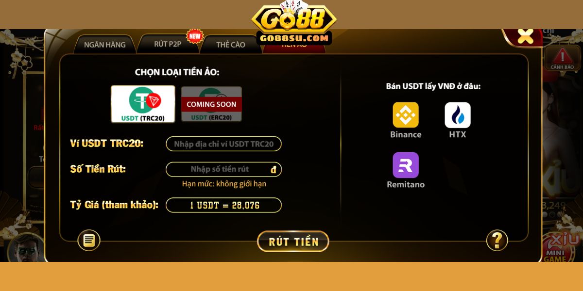 Go88 đã có phương thức rút tiền bằng tiền ảo